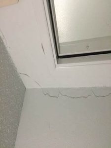 Shear walls can be very strong but unavoidable features will create weak points in the walls. Doors and windows perforate shear walls and create areas that are prone to additional flex and rotation where headers frame into full-height walls. It is common to find cracks that propagate from the corners of doors and windows since these areas act as hinges and rotate as the building moves back and forth. These cracks that run diagonally from perforations are generally of little concern to the integrity of the building.