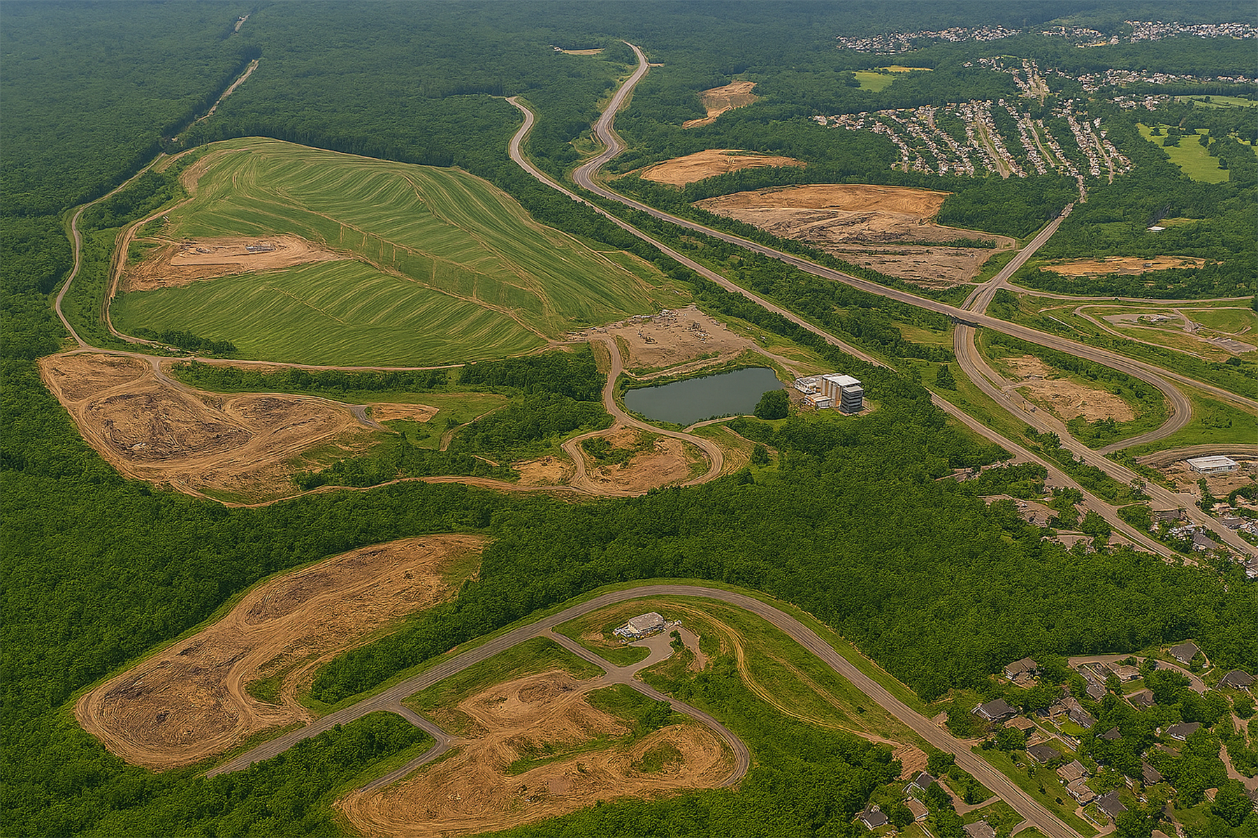 The extensive stormwater management system was designed to collect and convey flow from 399.17-acre drainage area that flows to, around, and through the 83-acre landfill expansion footprint. The system was analyzed for pre-construction, each development phase, and post-construction conditions for total and peak discharge rate reductions before discharging to the existing local drainage courses. Stormwater management was achieved through the use of flow channels on landfill benches, collection into downchute channels, conveyance to one of two sedimentation basins, and finally on to discharge. Available space was limited for placement of the basins. Due to this and the resulting basin capacity needed, dam designs and permitting was required and completed. Permitting efforts also included updates for an existing landfill NPDES permit, coordination with regulatory agencies on wetland mitigation permitting related to the landfill expansion, and submissions to the local municipality as required by borough ordinances for stormwater management compliance. RESPEC attended pre-application meetings with state Dams and Waterways and Solid Waste regulators, as well as follow-up meetings to review technical and administrative components of the expansion.